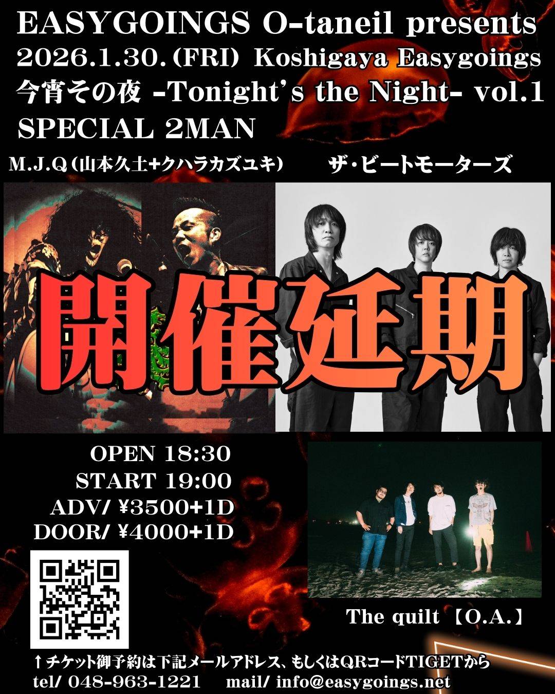 出演予定していましたM.J.Q(山本久土+クハラカズユキ)さんの出演が諸事情によりキャンセルとなりイベント開催を延期することに致しました。